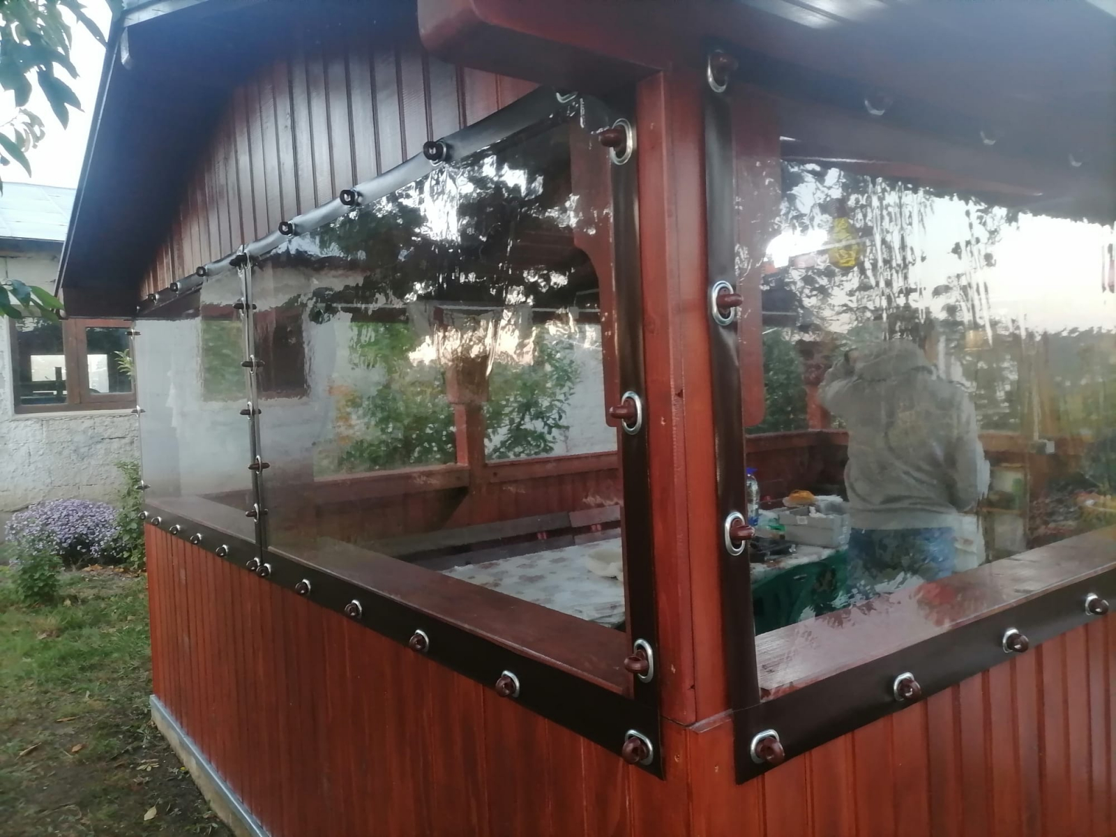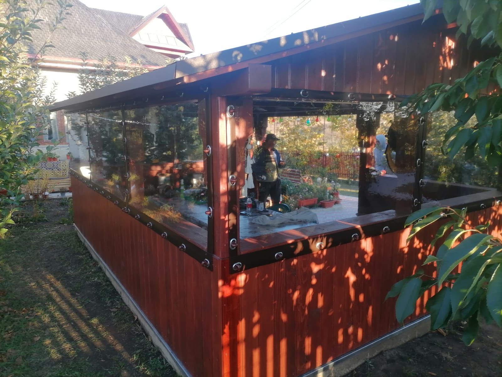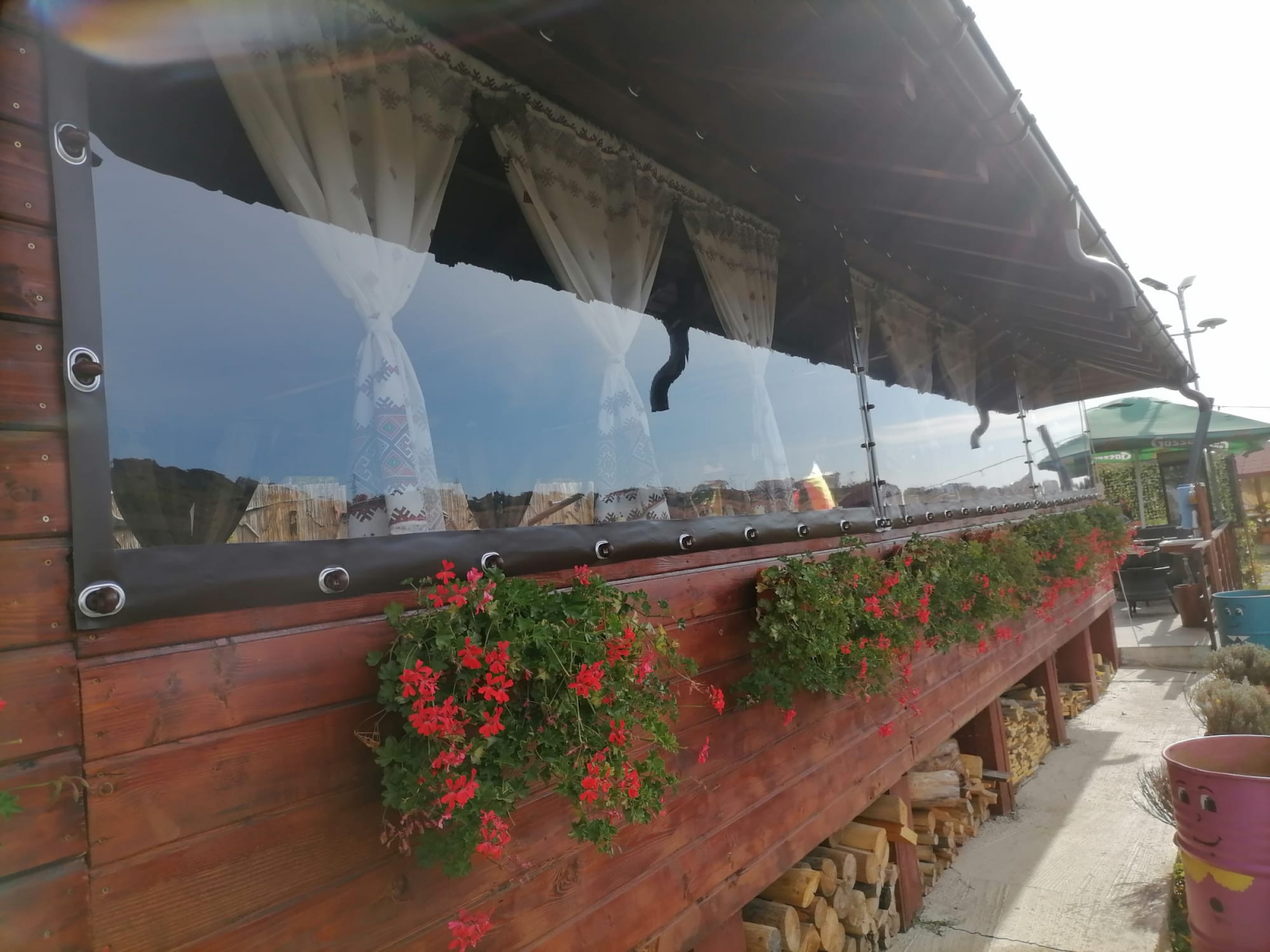 Acest proiect implică utilizarea foliilor transparente Cristal Flex®, prinsă cu bride maro și capse ovale, pentru a proteja terasa de vânt și intemperii. Folia oferă nu doar o barieră eficientă împotriva factorilor externi, dar păstrează și vizibilitatea panoramică, creând un spațiu confortabil și estetic.