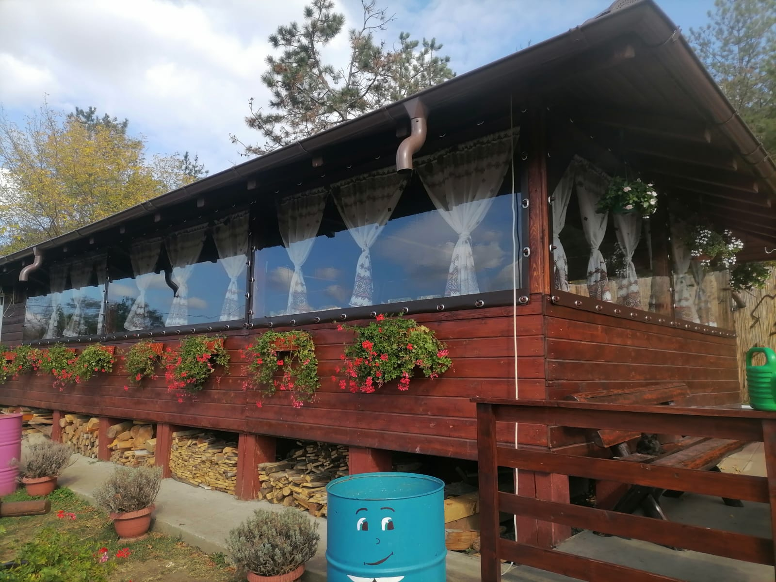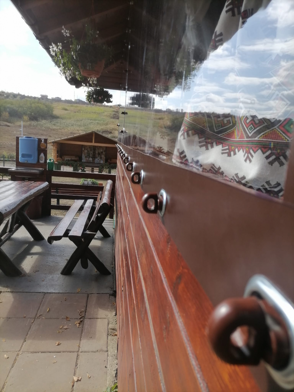 Terasa este amenajată într-un stil rustic, specific zonei Moldovei, completată cu elemente de lemn natural și flori suspendate, care contribuie la farmecul acesteia. Folia este montată cu atenție pentru a asigura o îmbinare perfectă, rezistență și un aspect plăcut.